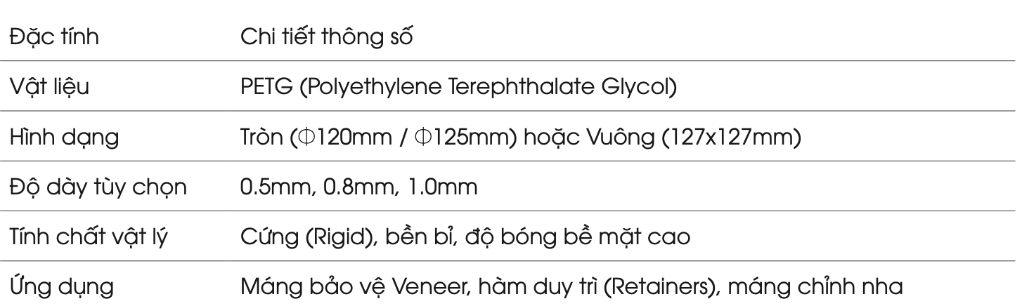 TẤM NHỰA ÉP hàm veneer dán. Đóng gói 10 tờ/túi, hình tròn đường kính 125mm, độ dày 1mm, màu A2