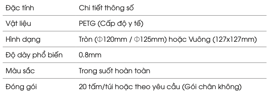TẤM NHỰA ÉP KHAY DUY TRÌ 1MM (1 lớp) . Làm khay chống nghiếng. Đóng gói 10 tờ/túi, hình tròn đường kính 125mm.